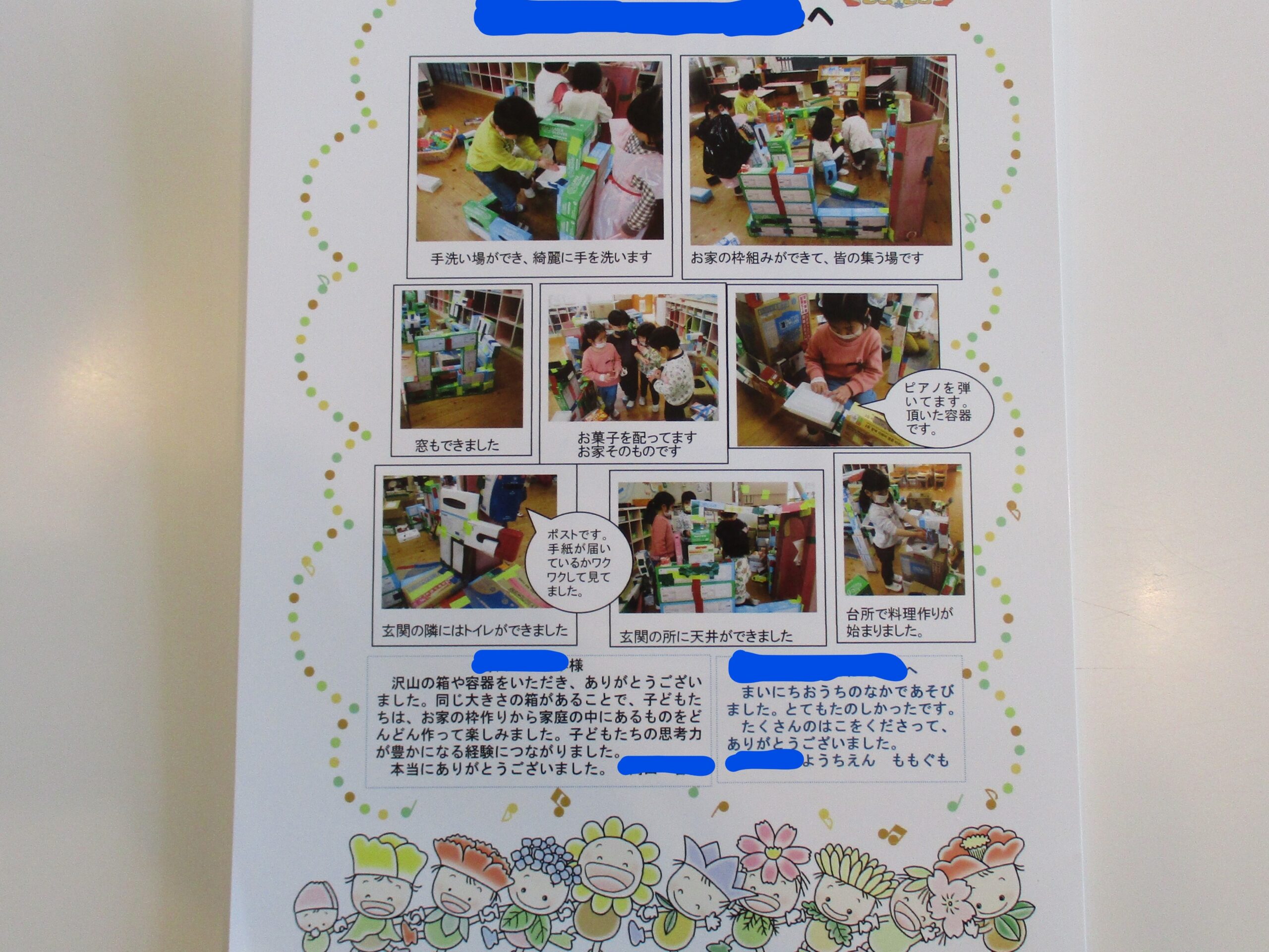 園児さんたちに遊んでいただいている様子を幼稚園の先生が写真に撮って、お手紙付きで