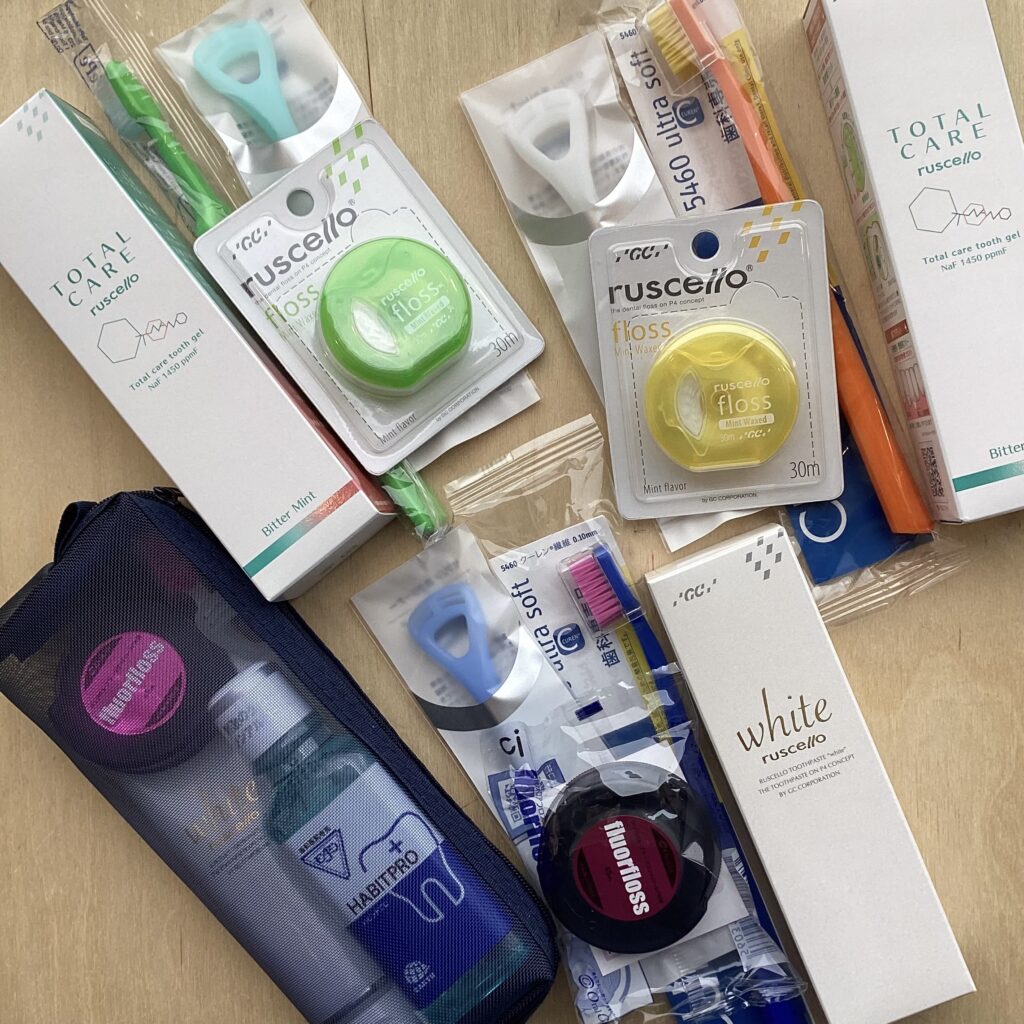 ルシェロホワイト.クラプロックス.舌クリーナー.フロアフロスのセットで、